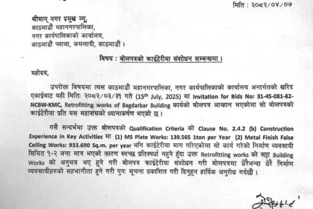 महासंघद्वारा बोलपत्र संशोधन गर्न माग गर्दै मेयरलाई पत्र