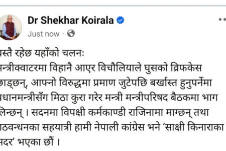 “भ्रष्टाचारमा मुछिएकै मन्त्रीलाई जोगाउने प्रचलन बढ्दो : डा. शेखर कोइराला”