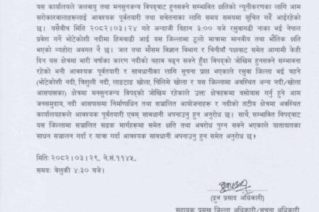 रसुवामा बाढीको जोखिम, प्रशासनद्वारा सतर्कता अपनाउन अनुरोध