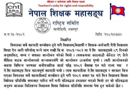 शिक्षक महासंघले विद्यालय शिक्षा विधेयक पारित नभए आन्दोलनको चेतावनी