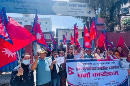 खानेपानीको माग गर्दै सुकुम्वासीले घेराउ गरे केयूकेएलको कार्यालय