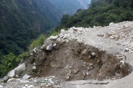 धादिङका उत्तरी सडक बर्खासँगै जोखिममा, स्थानीय जोखिम मोलेर यात्रा गर्न बाध्य