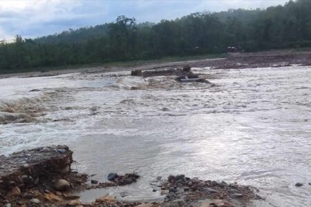 विनय खाेलामा बाढीले डाइभर्सन डुबायो, यातायात अवरुद्ध