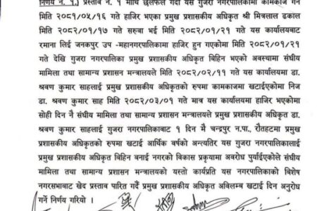 संघीय मामिला तथा सामान्य प्रशासन मन्त्रालयको कार्यप्रति पालिकाको खेद प्रकट