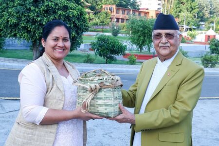 प्रधानमन्त्रीलाई राक्सिराङको पेरुङ्गोमा चिउरी