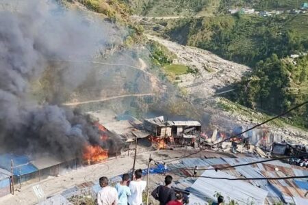 आगलागीबाट बाम्काबजारका १३ पसल ध्वस्त