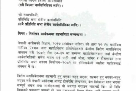 राष्ट्रिय झन्डा बेर्ने कार्य नगर्न कांग्रेसको परिपत्र