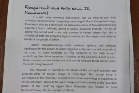सिक्किमका मुख्यमन्त्री प्रेम सिंह गोलेद्वारा कञ्चनजङ्घा आरोहण प्रयासको विरोधमा गृहमन्त्री अमित शाहलाई पत्र
