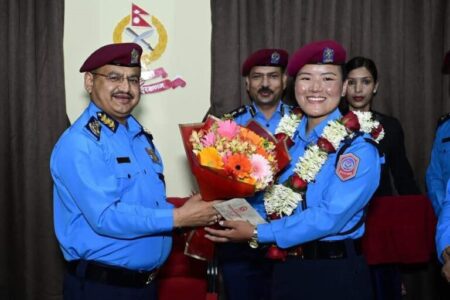 प्रहरी नायव निरीक्षक कुन्जाङ छोपेल शेर्पा दर्ज्यानी चिन्हद्वारा सुशोभित