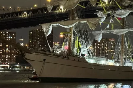 नौसेनाको जहाज न्युयोर्कको ब्रुकलिन ब्रिजमा ठोकियो