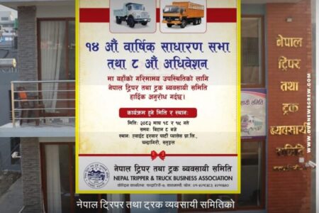 माघ १८ र १९ गते नेपाल ट्रिपर तथा ट्रक व्यवसायी समितिको ८ औं अधिवेशन तथा १४ औं सभा
