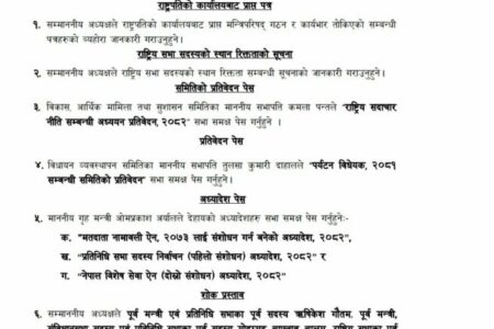 आज राष्ट्रिय सभाको बैठक दिउँसो १ बजे सिंहदरबार बस्दै