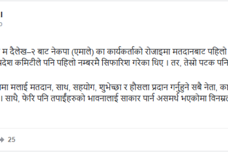 टिकट नपाएपछि विष्णु रिजालको व्यङ्ग्यात्मक असन्तुष्टि