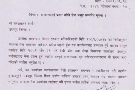 उदयपुरको करदाता सेवा कार्यालय खारेज, सेवा अब कोलेनिकाबाट
