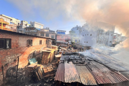 गैरीगाउँको आगलागी एक घण्टापछि नियन्त्रणमा