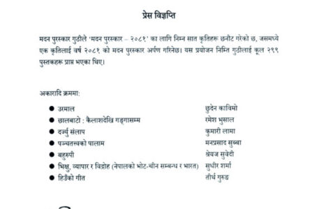 यस वर्षको मदन पुरस्कारका लागि उत्कृष्ट सात पुस्तकको सूची सार्वजनिक