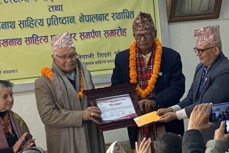 बद्रीविक्रम राष्ट्र गौरव पुरस्कार साहित्यकार तेजेश्वरबाबु ग्वङ्गलाई प्रदान